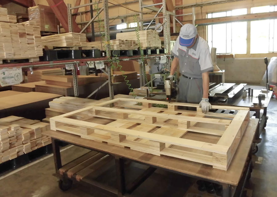 Akita Sales Office is located in the south of Akita prefecture, it is a region of heavy snowfall and is famous for its Yokote Kamakura. Our main business is packaging of auto parts, logistics operations, sales, equipment manufacturing and maintenance, building and repairing and security. In addition to groceries, the shop on the premises also sells, replaces and stores tires in-house. We also offer mobile sales to nearby companies during lunch breaks, which are very popular with our customers. In the area of logistics, we offer a delivery service where we take care of parts on behalf of distant parts manufacturers and deliver them to the factory, and we also assemble and provide wooden pallets for export.