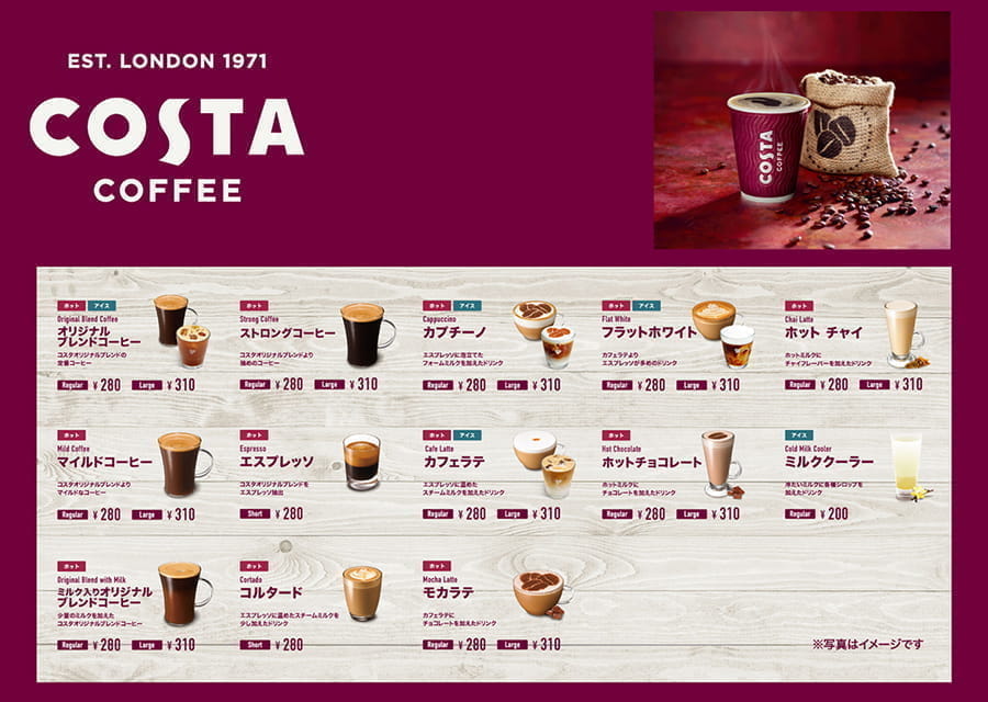 The coffee extracted from COSTA EXPRESS has a barista quality tasteful taste that is worthy of being named the No.1 in Europe. We also have Hot Chocolate, Cold Milk Cooler and Chai Latte for those who are not a big fan of coffee, so please stop by when you visit Atsugi No.1 Plant. In addition, the COSTA EXPRESS machine is designed by Pininfarina which is the same company that designs Ferrari, Alfa Romeo and Maserati. We hope you will enjoy its beautiful form.